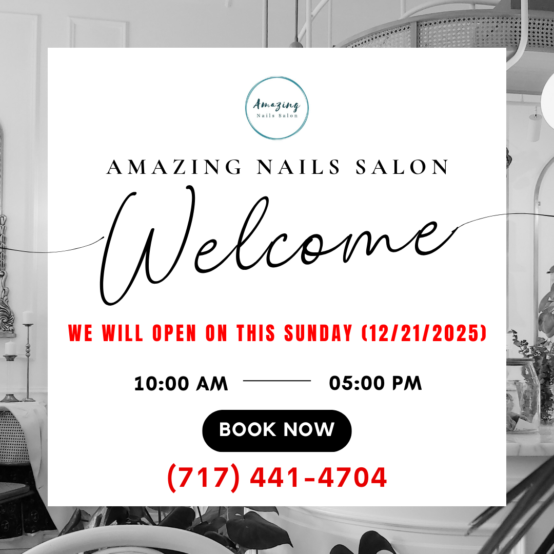 Discover Amazing Nails Salon, where we provide professional nail and spa services in 5007 Carlisle Pike, Mechanicsburg, PA 17050. With high standards in quality, cleanliness, and customer care, we create a relaxing space for your pampering needs.